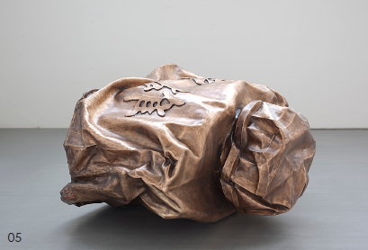 展览中还包括许多雕塑作品。这些青铜或者水泥制作的墨水瓶、钢笔、书籍、收音机等等,都似乎受到过挤压,以一种变形了的方式呈现在观众面前。与其说这种挤压来自某种具体的外力,莫 如说它来自于时间或记忆。它们经过历史来到我们的面前,带着过 去的痕迹和生活的琐碎性。正如那些光斑和线一样,这些零碎的小物件导向的是我们与我们的过去之间的联系。在今日的中国当代艺术中,张晓刚这种不断试图以新的方式来触摸、联系历史的努力,似乎与这个历久弥新的国家正在经历着的一切相互暗合。与许多当代艺术家对“酷”的追求不同,张晓刚试图将当下经验历史化,对历史记忆不断强调——这或许让我们看到了来自中国的艺术家努力以自身观照过去的截然不同的历史观。这种历史观不是怀旧的,而是享 受的,是超越时间的。她源于中国人一直以来无法抹去的对安全感的追寻与依赖。